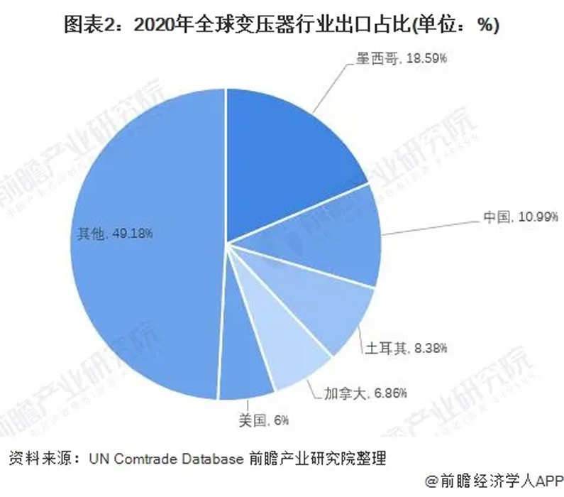 中國變壓器出口比例排名較前